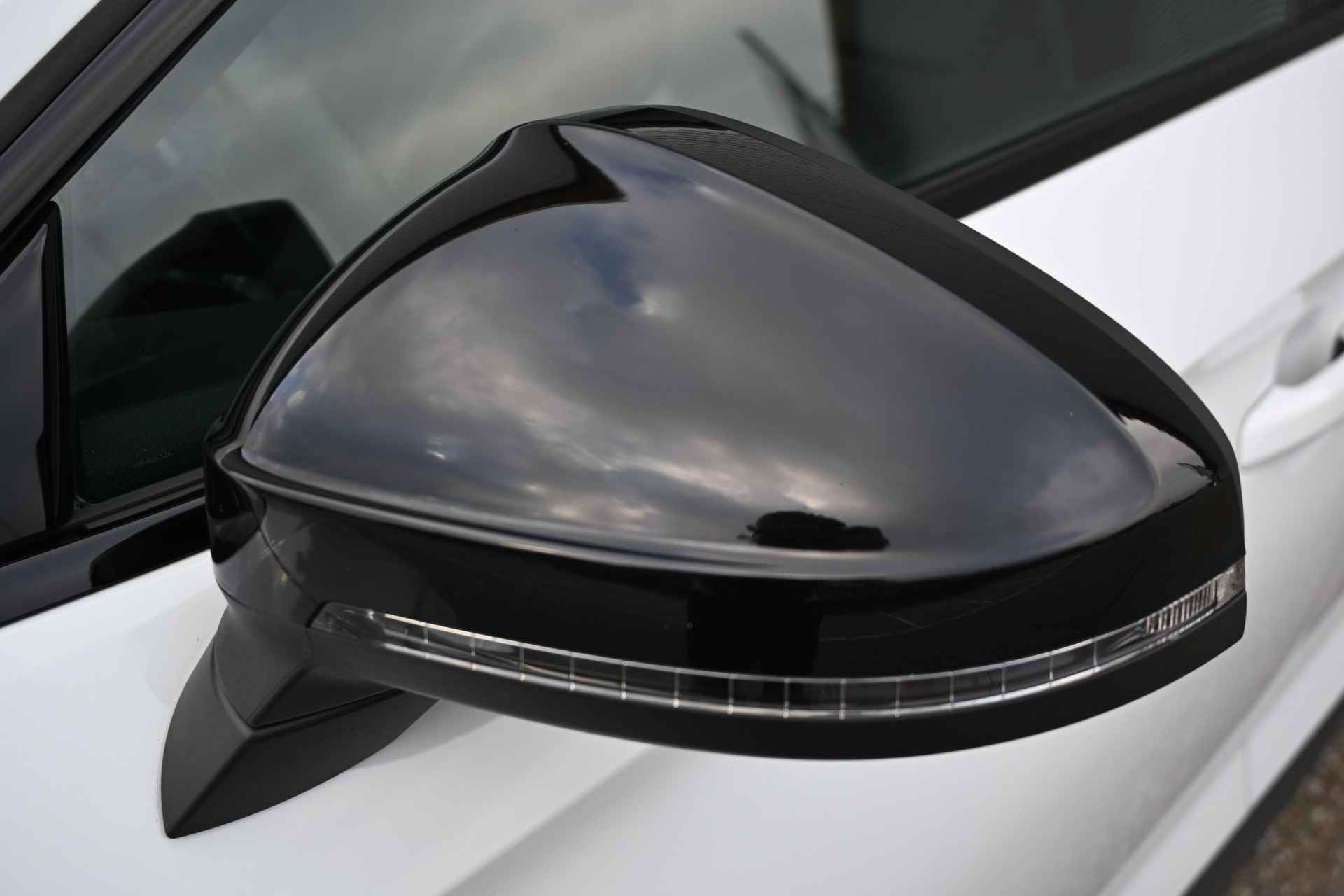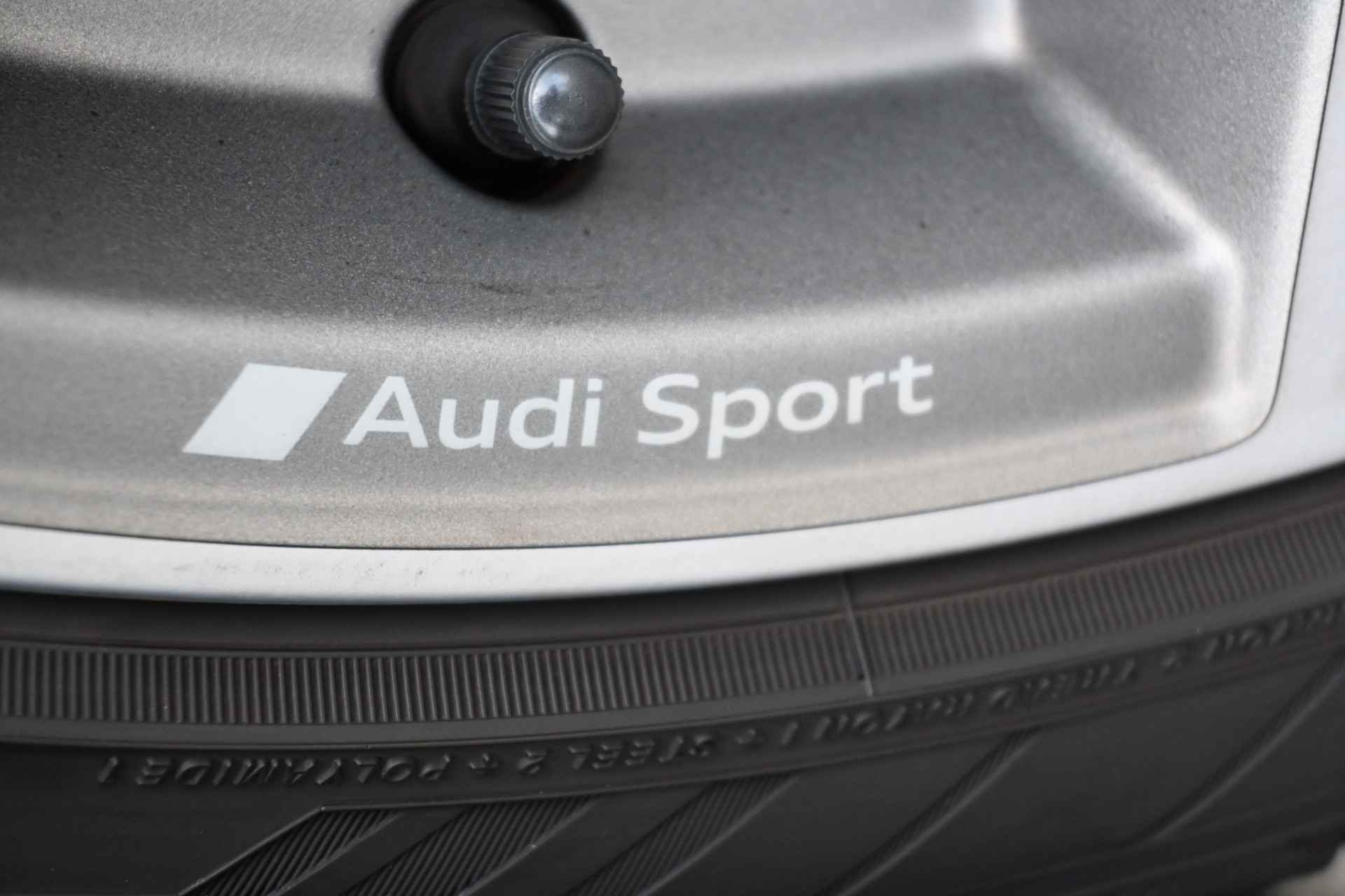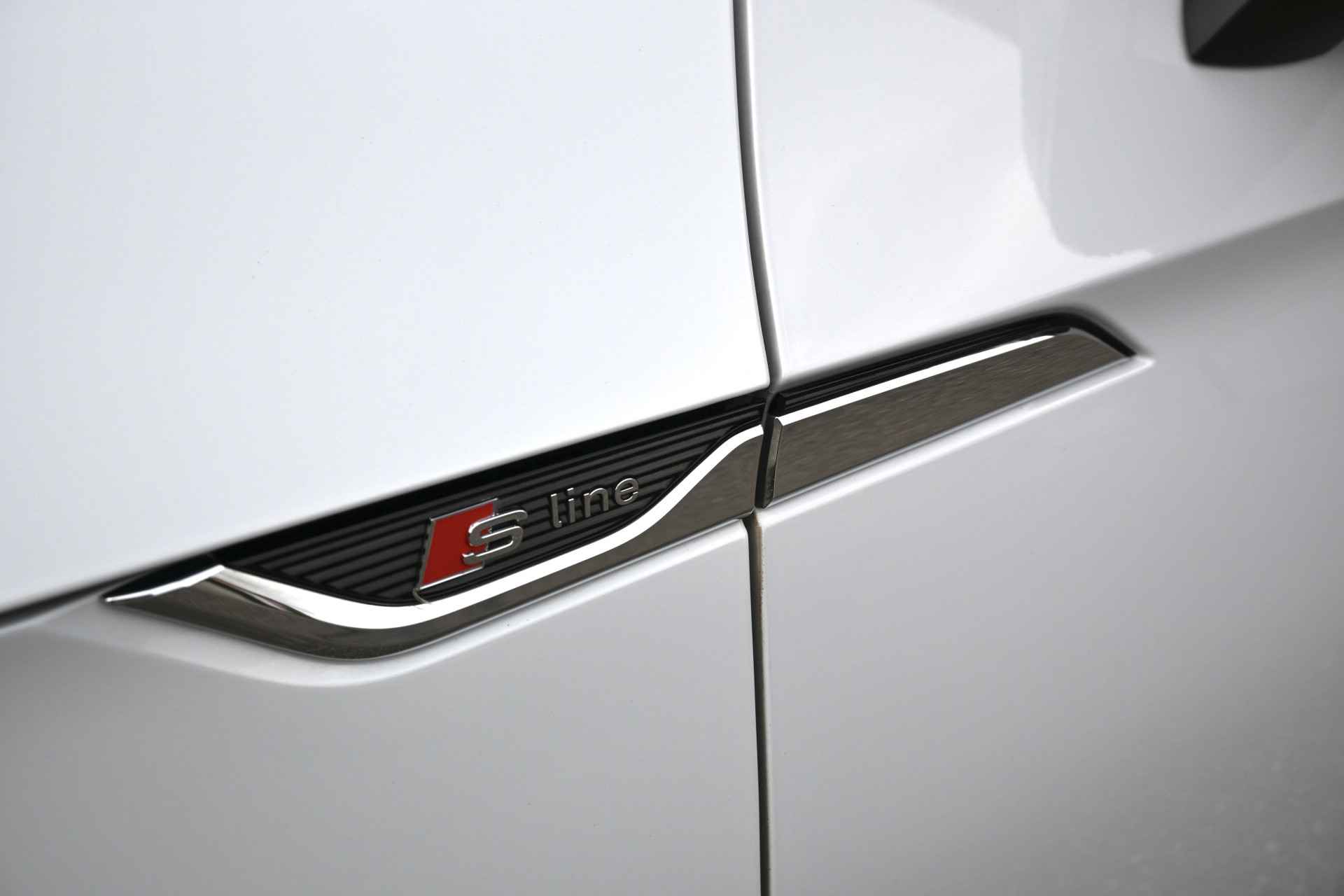 Een auto waar de kleuren Parelmoer wit en zwart mooi samen komen door het black optiek pakket origineel van Audi.